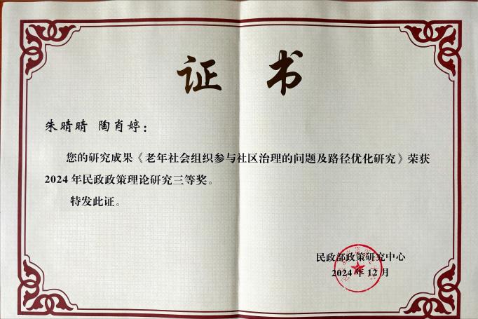 学院教师在民政部民政政策理论研究中获奖